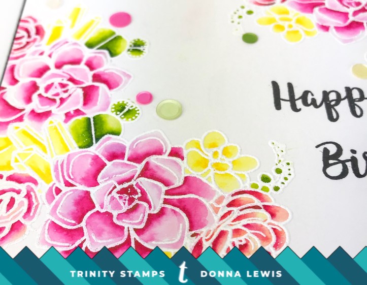 This card was made using stamps and sparkle from Trinity Stamp Co. I’m on the design team for this sweet company, and it really is a pleasure to represent Taniesa, and use her lovely stamps.