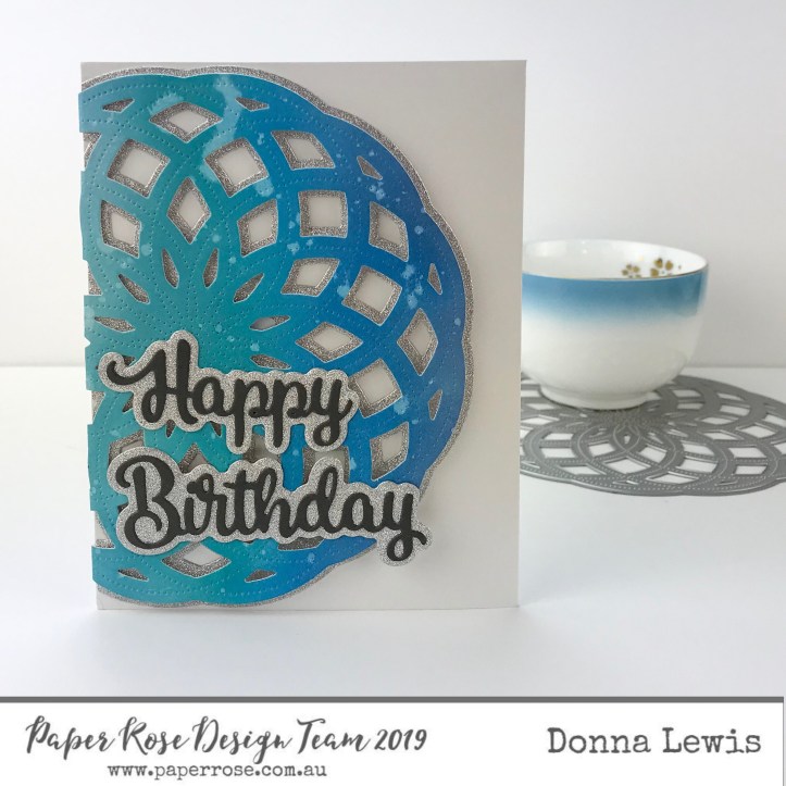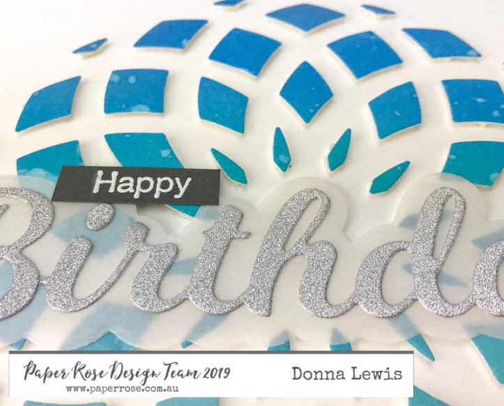 I cut the card using a stitched rectangle die (This die is metric, making it excellent for Australian paper), cut a scripty birthday greeting with background, and my card was done.