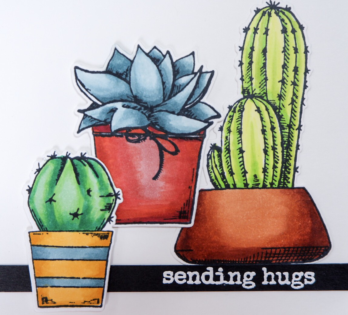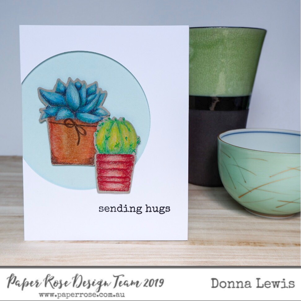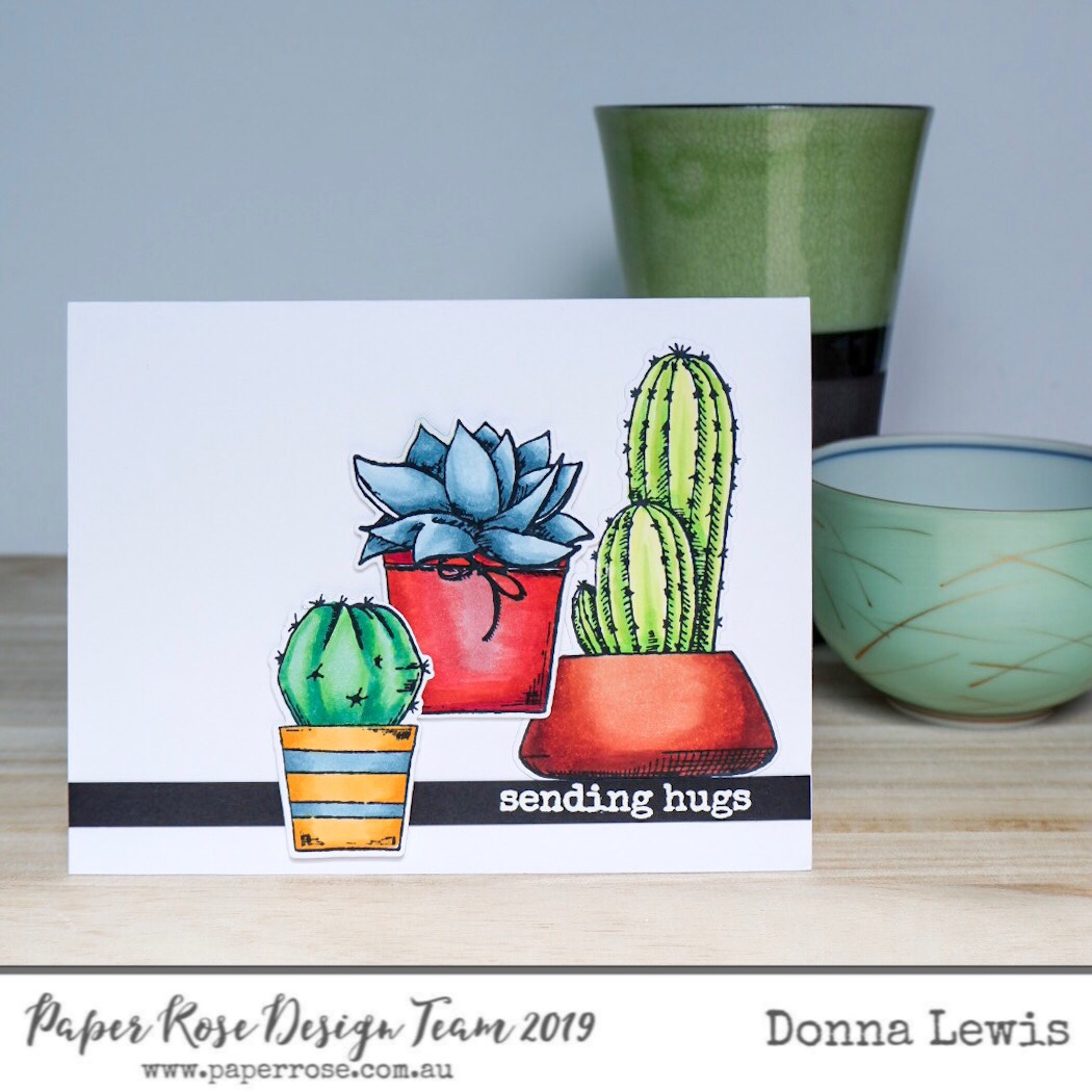 Hello Crafty friends. I have some not-so-prickly cactus cards to share with you today, using a couple of different colouring media – pencils and Copics, and featuring two stamp and die sets from Paper Rose Studio.