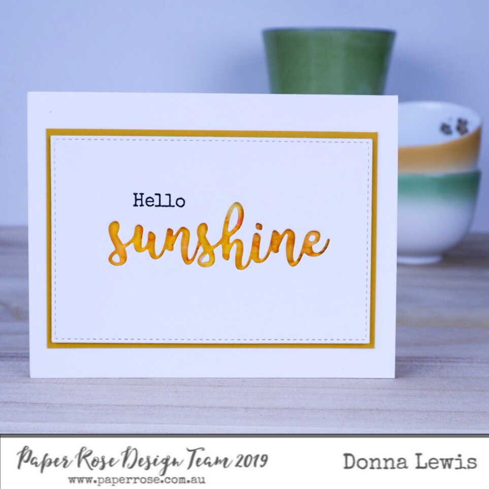 This final card uses a small offcut of watercoloured paper that I had in my “bits to use someday” box. It was just big enough to cover the back of the sunshine cutout. The yellow border is a piece of regular yellow cardstock.