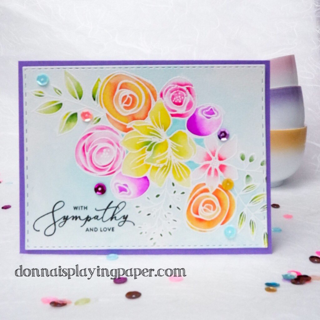 I wanted to make a card that spoke of beauty as well as our love, so I chose the Sketched Flowers stamp from Simon Says Stamp, and coloured it in my most beautiful colours.
