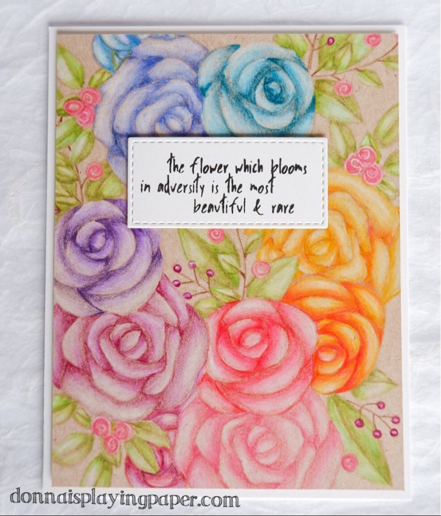 The sentiment comes from the Wildflowers stamp set, also from Paper Rose. This stamp set has quite a few encouraging flower sentiments, so I reach for it quite a lot. I stamped it on ivory card, to match the card base that I chose for this card. The sentiment panel is cut with stitched detail using this Stitched Rectangle die. I wanted the coloring to be the star of the show, so no other elements were added. This still ended up busier than most of my cards!