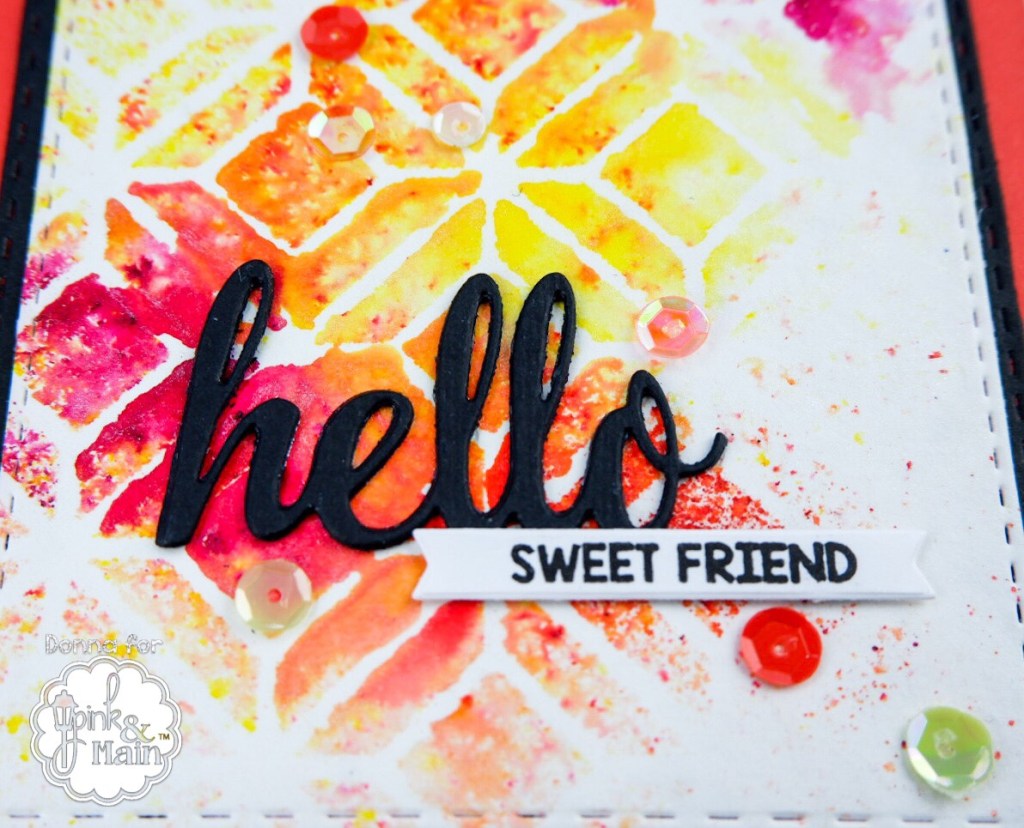 The sentiment is from the Pink and Main Wreath Base dies, and it is stacked three layers high. The smaller sentiment is from the Daisy Bugs stamp set. This set has the sweetest little bugs and flowers, but also this lovely sentiment, which fits the Sentiment Strip Dies perfectly.