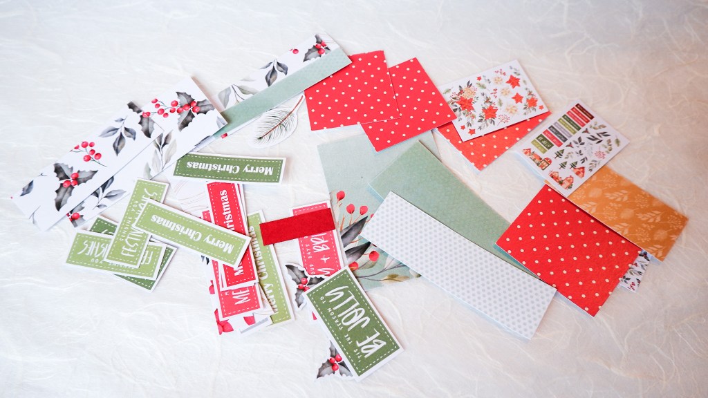 I’ve been inspired by paper crafters such as Kristy Marcotte that take a paper pad and use up every scrap of it, and when I received the Christmas Joy paper from Paper Rose Studio, I knew that’s what I wanted to do.