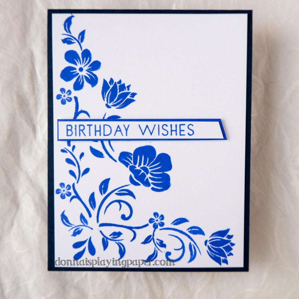 This first card used Unicorn White Pigment ink from Hero Arts, stamped onto Simon Says Stamp Soft Navy card. You can make the image even whiter by drying the ink with a heat tool between coats. The sentiment is from the Black and White Sentiment Strips from Paper Rose Studio.