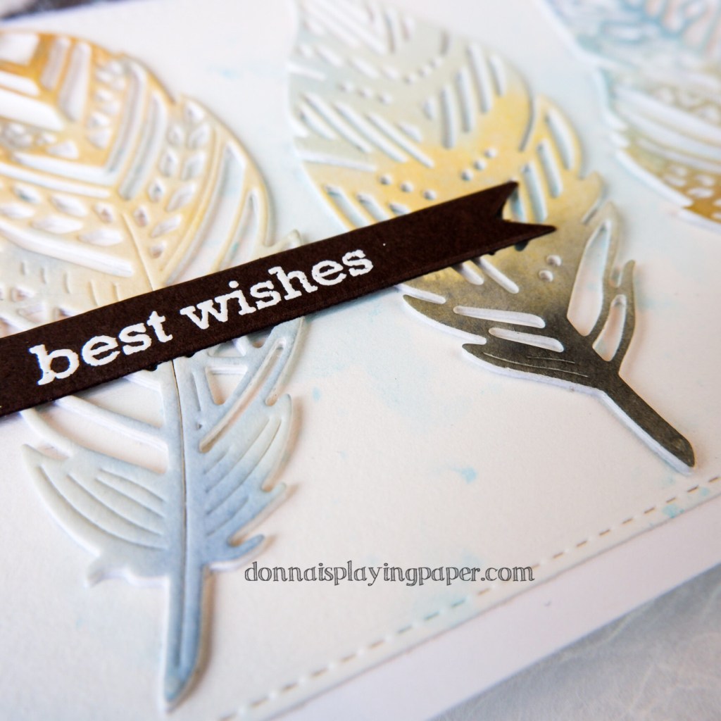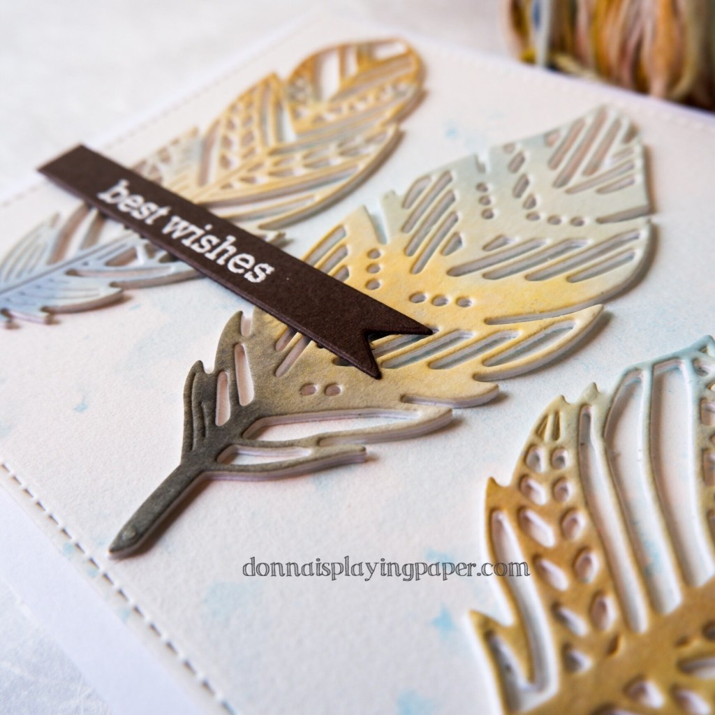 Hello crafty friends. It’s Donna here in Tokyo. We’re starting to live in a sea of boxes as we pack for our return to Australia at the end of the month. I have a soft card for you today that uses the beautiful Feather Trio die from Paper Rose Studio.
