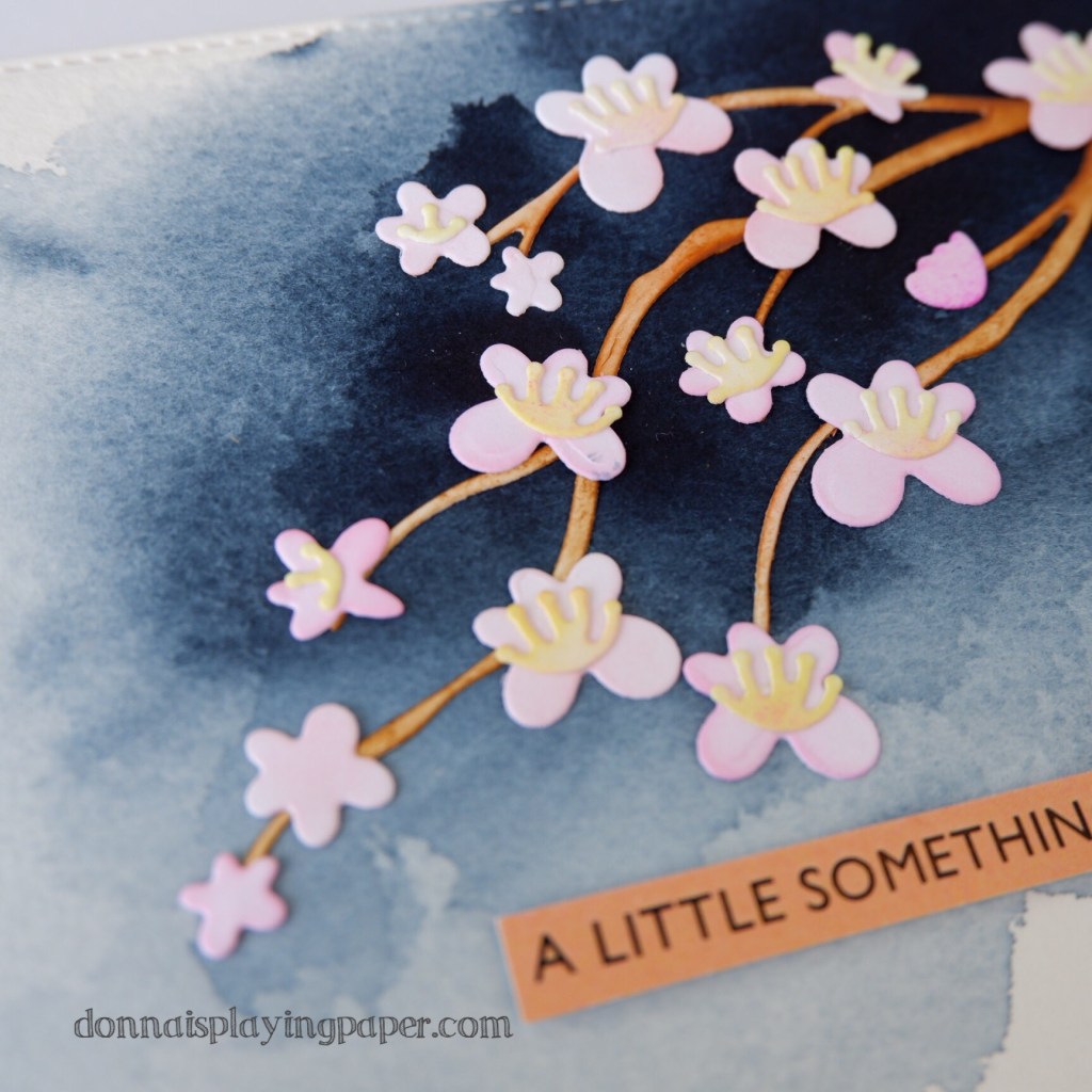 The main die that I’ve used to create this card is from Paper Rose Studio, and it’s called Cherry Blossom Branch dies. I cut the die first from white paper, and coloured the petals and branches by ink blending them in a range of colours. The supplies I used are listed below.