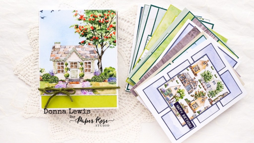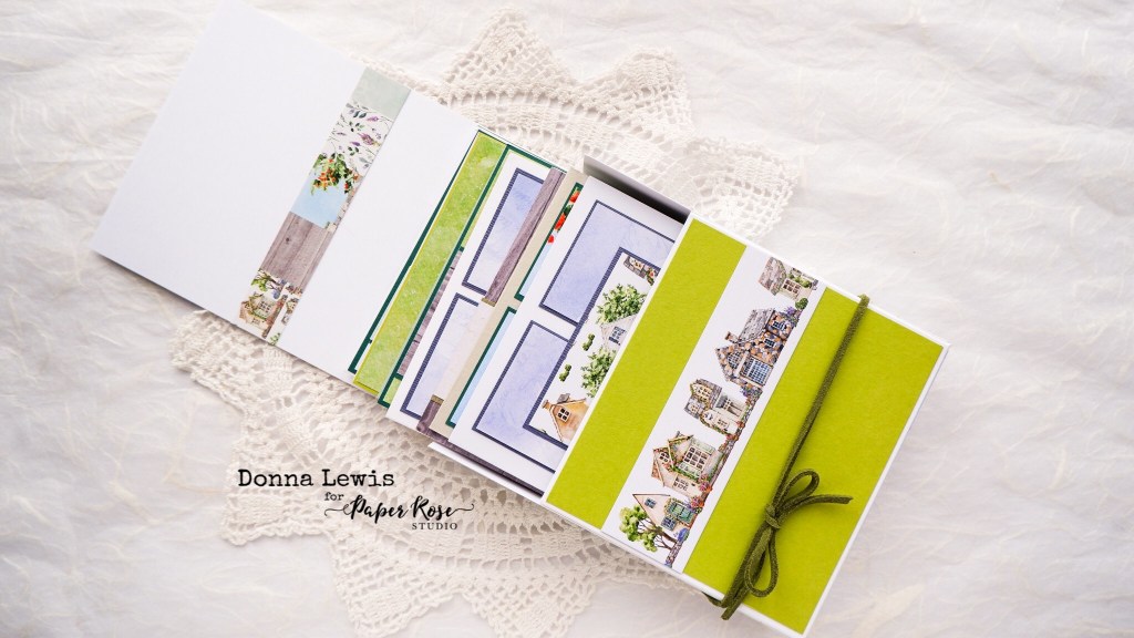 Today, I have a paper project for you that is not a card! I have used the leftovers from the set of ten cards that I made in a recent blog and video, and created a gift box to give them away in. You can see the stack of 10 cards in the picture above. The main features of today’s box that I wanted to have (and that make if different from other boxes that I have found on the interwebs) are