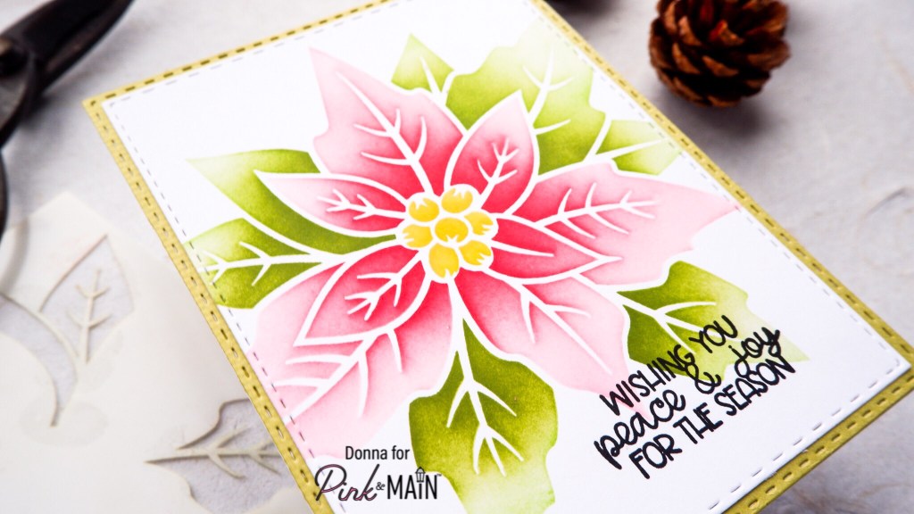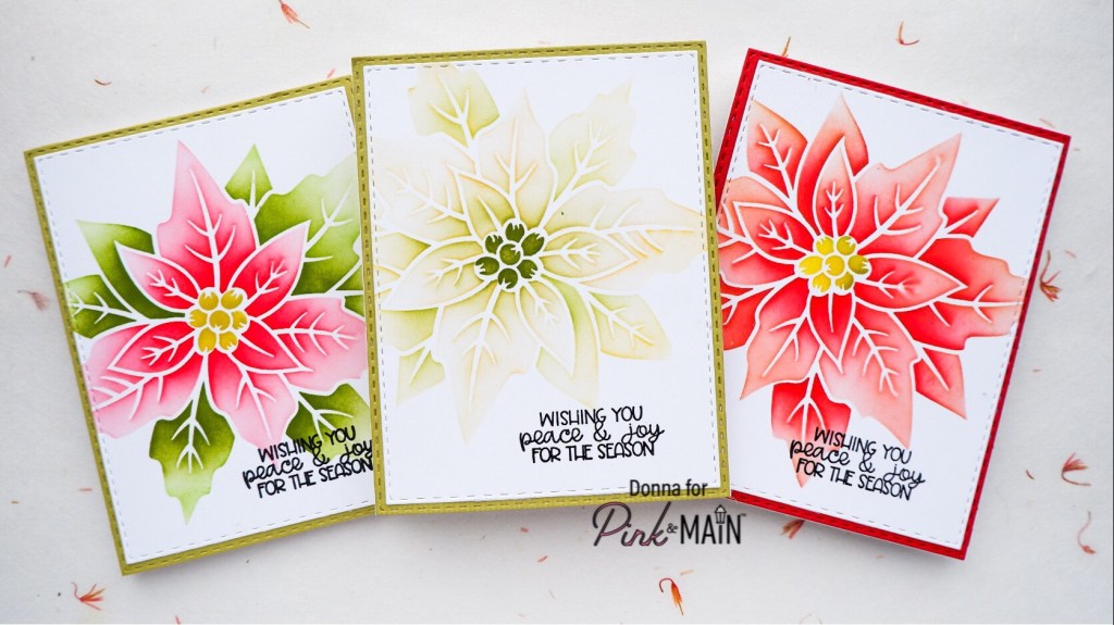 Hello crafty friends. It’s finally cooling down here in Japan, and I’m so excited! I’ve been playing with the Poinsettia Stencil, which is new from Pink and Main, and I’ve made a video showing how to use this single stencil with three layers included in its design.