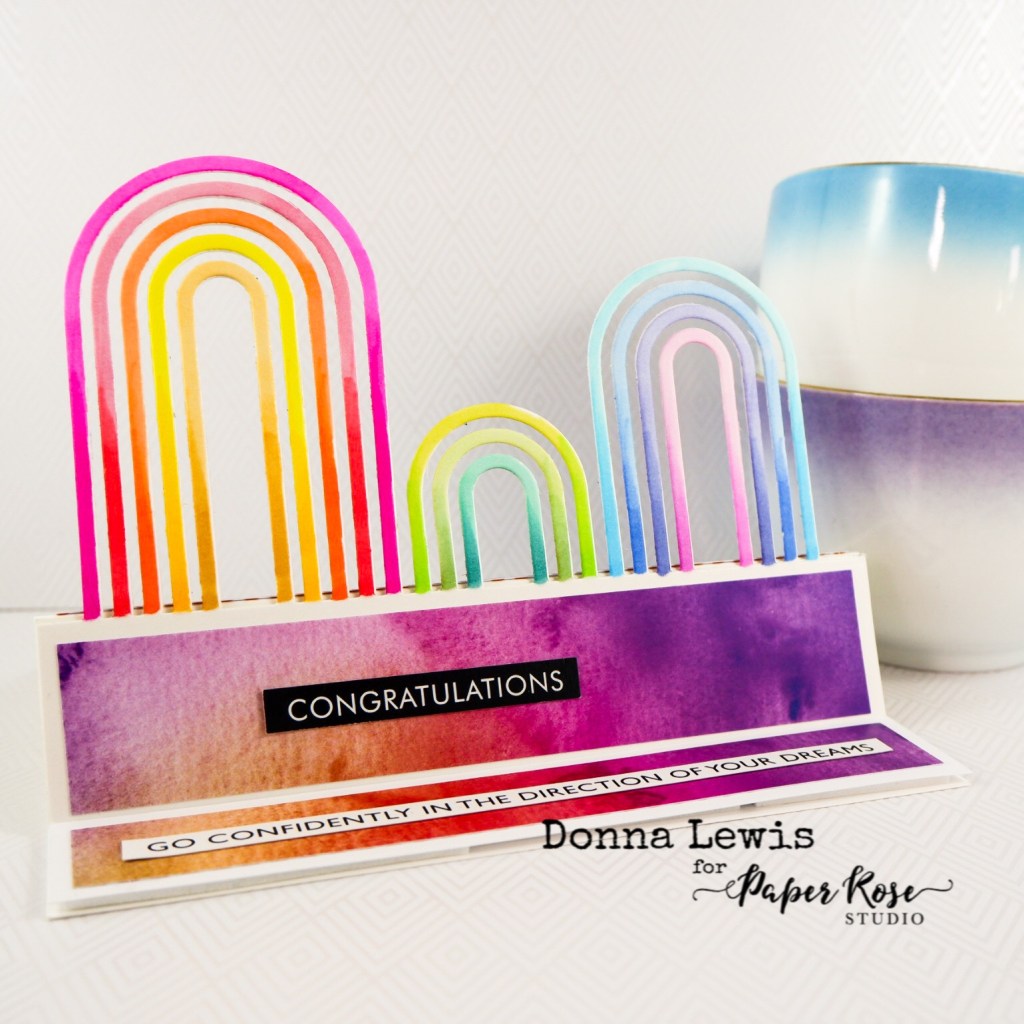 Today’s card is a rainbow extravaganza! I’ve used a rainbow die, as well as rainbow paper. You can see the making of the card, with instructions for the easel element in the video below.