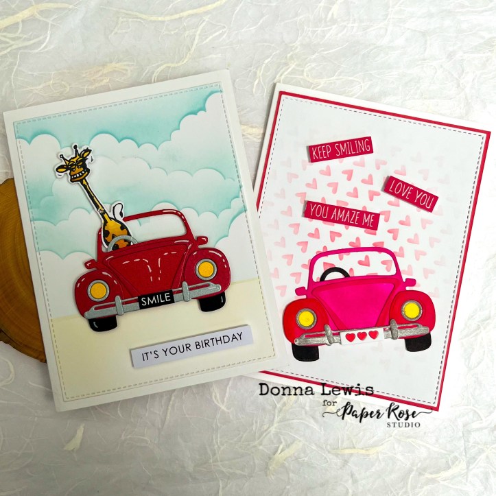 The hero die for these cards is the Love Bug Car Builder die from Paper Rose. I made two different cards, including one in pink, in honour of the memory, although they do have quite a few similarities. Rather watch a video? It’s below!