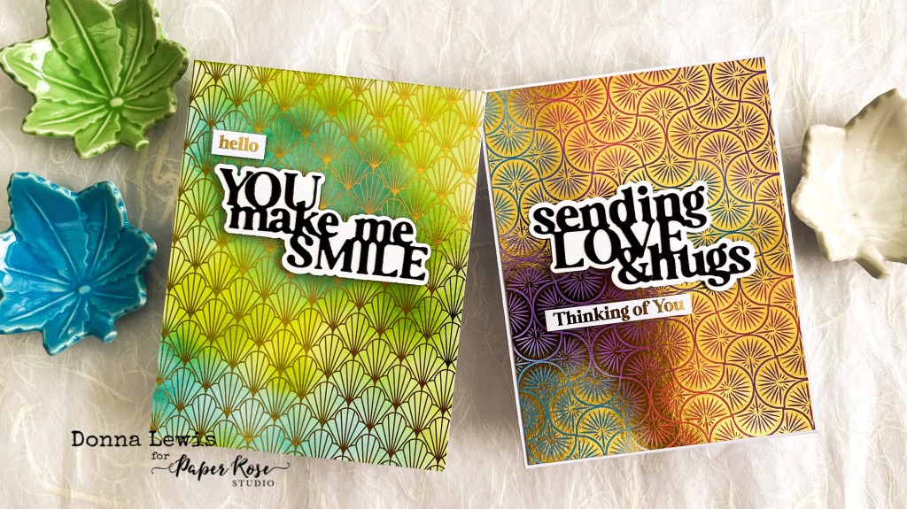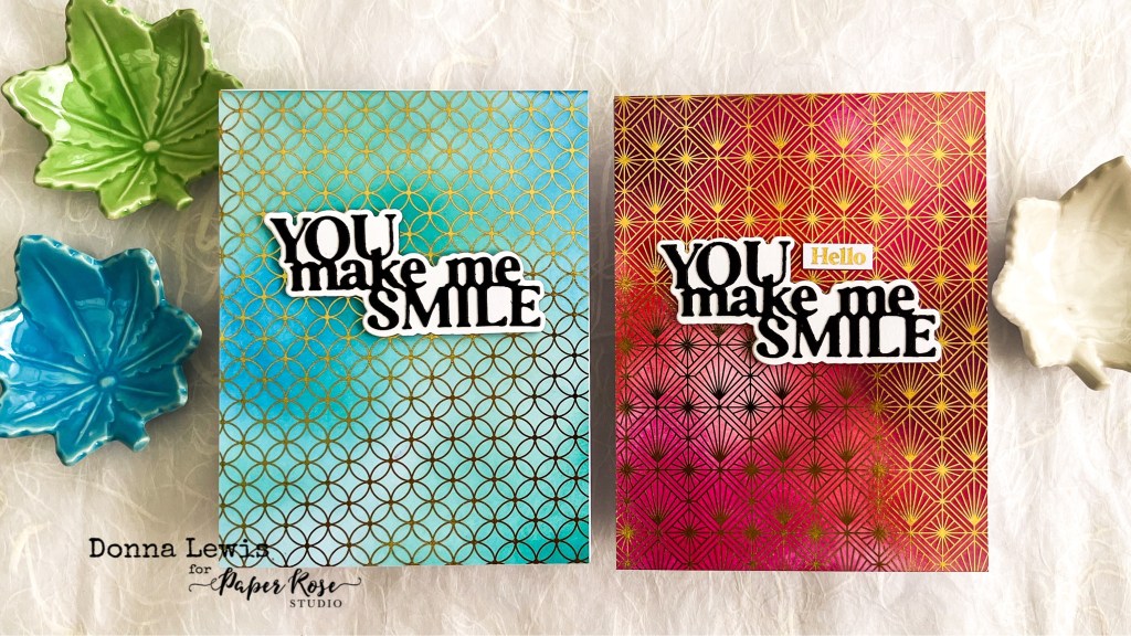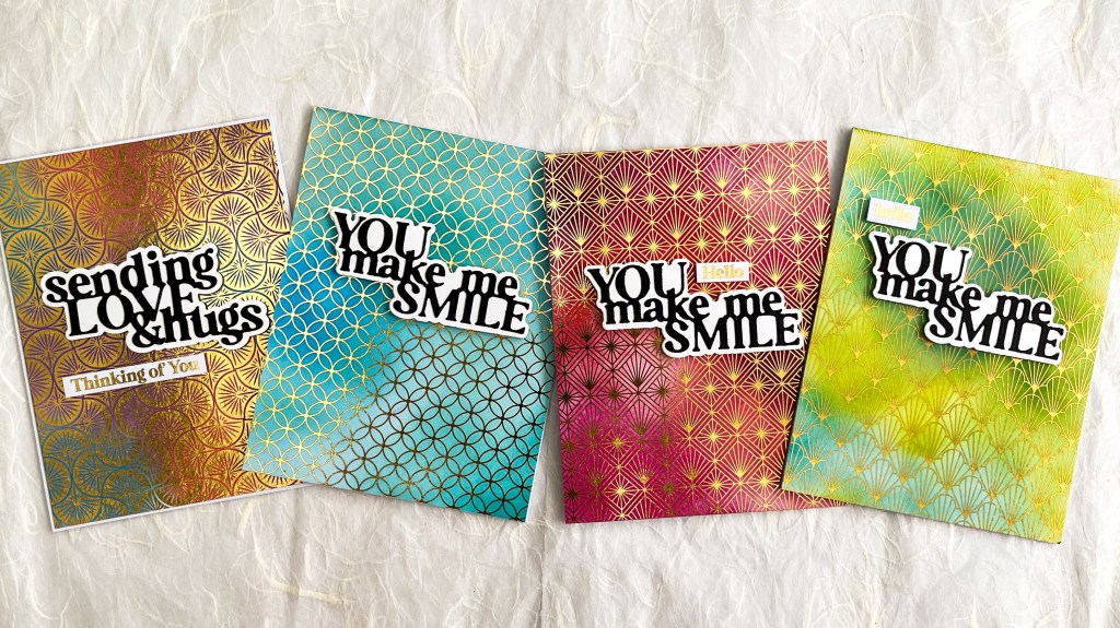 The papers I used come from a Paper Rose set called Wedding Joy. This comes in silver, gold and rose gold. I used the gold for today’s cards, and inkblended over the papers using dye inks. I wiped each panel down once I was done blending, then added some sentiments. That’s it! But I love the combination of the gold and the vibrant colours in the background.