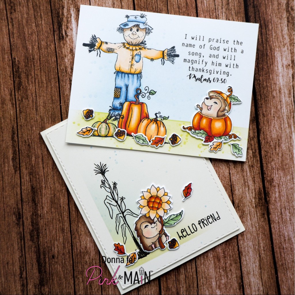 Love the scarecrow and hedgies! Very fun cards with pretty coloring!